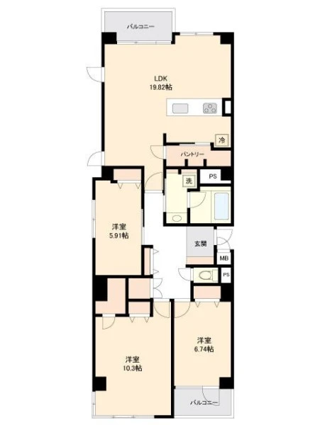 | 間取り | 3LDK | 間取り向き | (角部屋) |