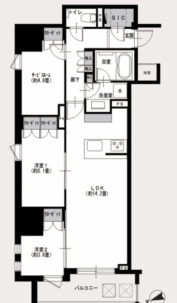 | 間取り | 2LDK+S | 間取り向き | (角部屋) |