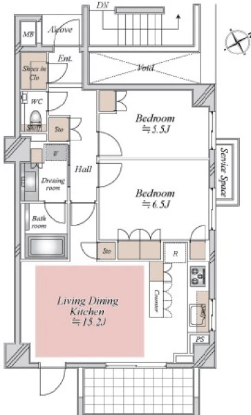 | 間取り | 2LDK | 間取り向き | (角部屋) |
