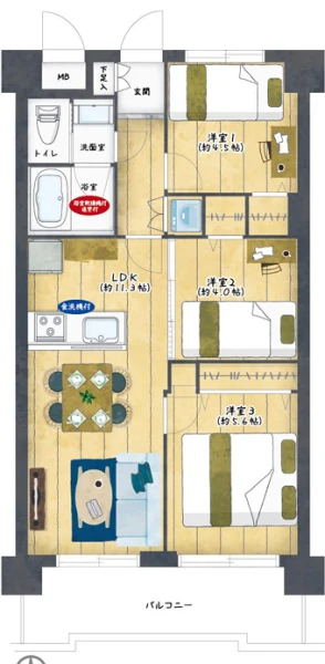 | バルコニー面積 | 7.68㎡ | バルコニー向き | 南 |