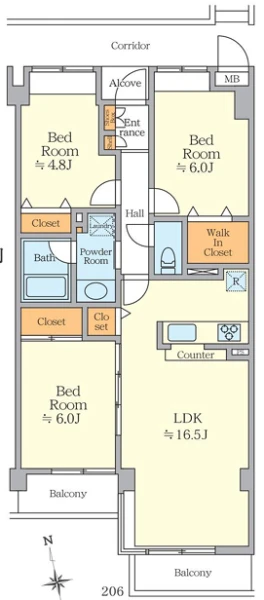 | 設備 | 都市ガス、カウンターキッチン、2面バルコニー、ウォークインクローゼット、エレベータ、宅配ボックス、オートロック | ||