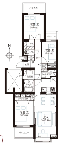 | 専有面積 | 74.85㎡(壁芯) | 建物構造 | 鉄筋コンクリート(RC) |