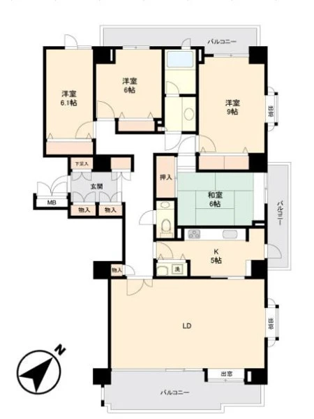 | 間取り | 4LDK | 間取り向き | (角部屋) |