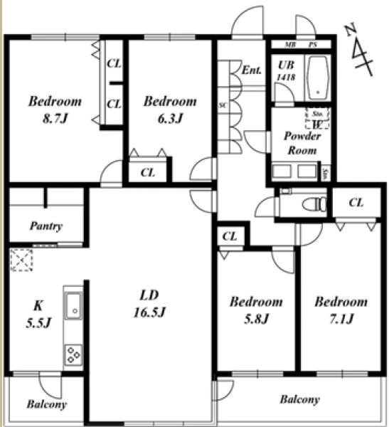 | 専有面積 | 116.25㎡(壁芯) | 建物構造 | 鉄筋コンクリート(RC) |