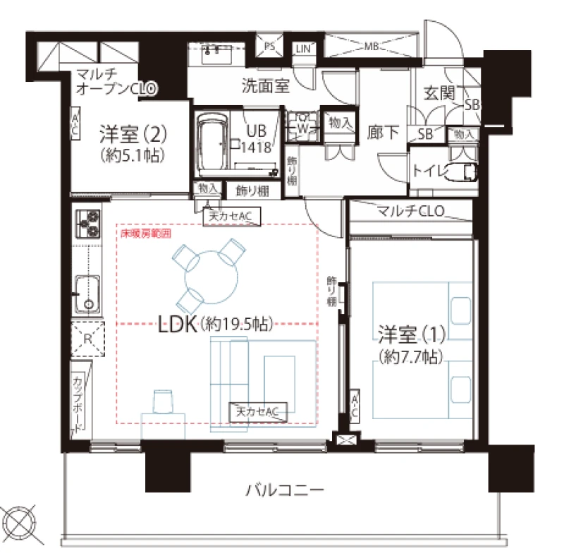 | 専有面積 | 77.56㎡(壁芯) | 建物構造 | 鉄筋コンクリート(RC) |