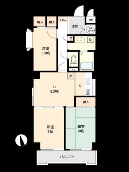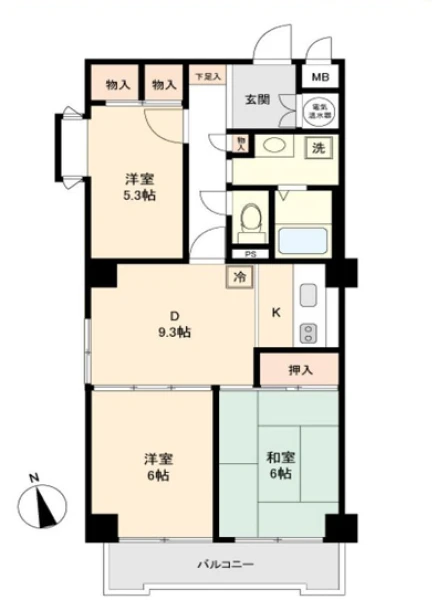 | 間取り | 3DK | 間取り向き | (角部屋) |