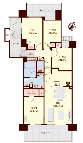 | バルコニー面積 | 20.45㎡ | バルコニー向き | 南東 |