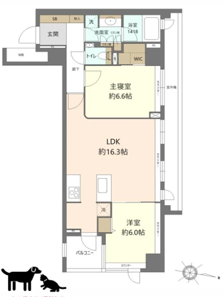 | 間取り | 2LDK | 間取り向き | (角部屋) |