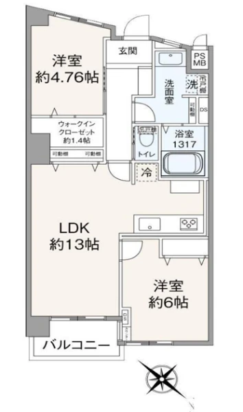 | 専有面積 | 56.59㎡(壁芯) | 建物構造 | 鉄筋コンクリート(RC) |
