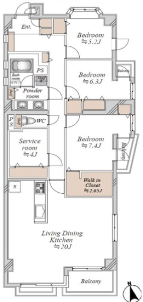 | 間取り | 3LDK+S | 間取り向き | (角部屋) |