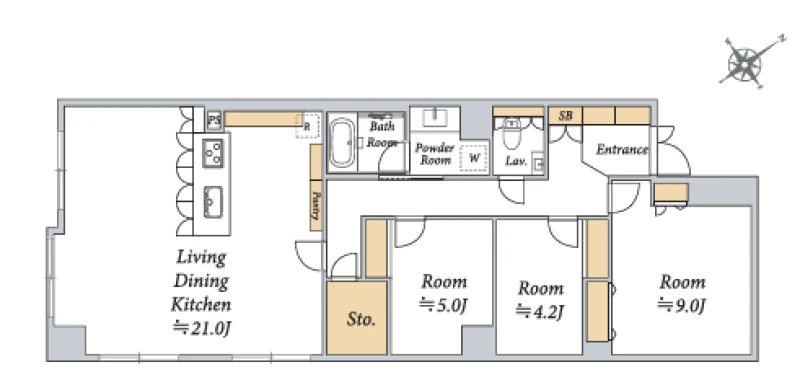 | 間取り | 3LDK | 間取り向き | (角部屋) |