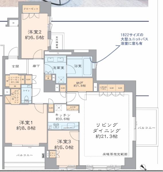 | 専有面積 | 113.6㎡(壁芯) | 建物構造 | 鉄筋コンクリート(RC) |