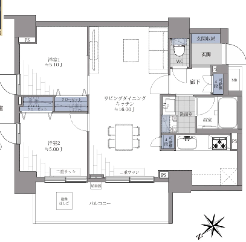 | 間取り | 2LDK | 間取り向き | (角部屋) |