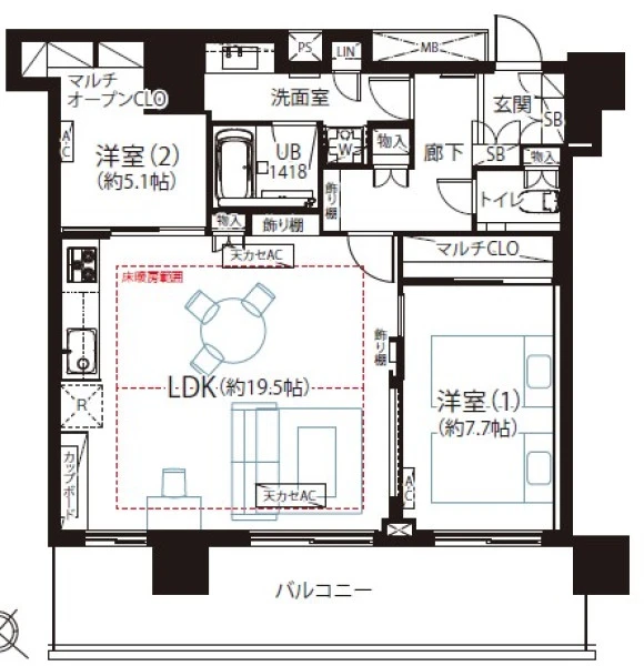 | バルコニー面積 | 17.64㎡ | バルコニー向き | 南西 |