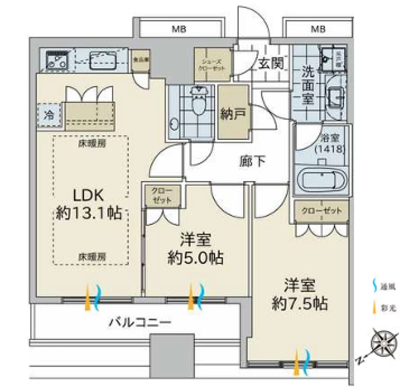 | バルコニー面積 | 5.65㎡ | バルコニー向き | 北西 |