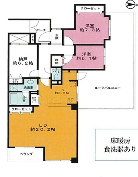 | 間取り | 2LDK+S | 間取り向き | (角部屋) |