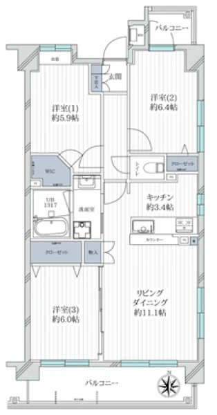 | 間取り | 3LDK | 間取り向き | (角部屋) |