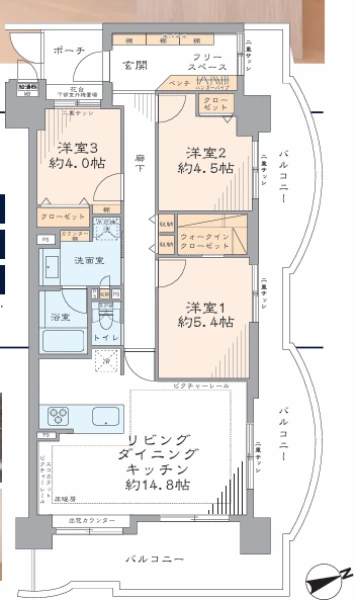 | バルコニー面積 | 33.44㎡ | バルコニー向き | 南東 |