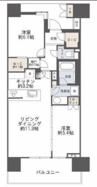 | 専有面積 | 61.57㎡(壁芯) | 建物構造 | 鉄筋コンクリート(RC) |