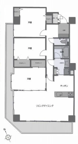 | 間取り | 3LDK | 間取り向き | (角部屋) |