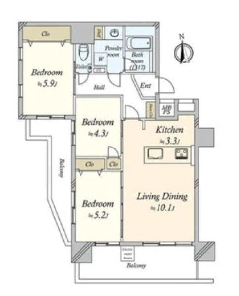 | バルコニー面積 | 17.4㎡ | バルコニー向き | 南西 |