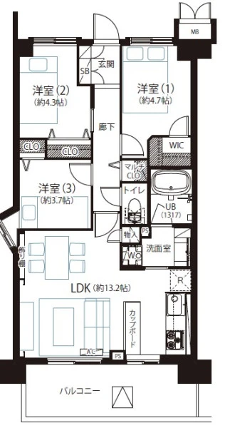 | 専有面積 | 59.49㎡(壁芯) | 建物構造 | 鉄筋コンクリート(RC) |