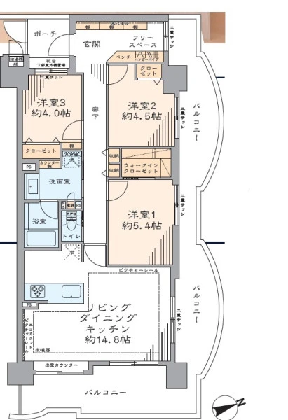 | 間取り | 3LDK | 間取り向き | (角部屋) |