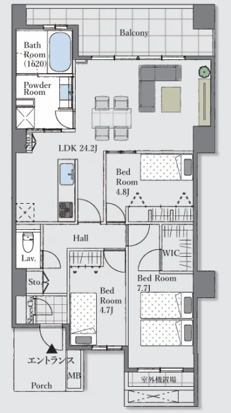 | バルコニー面積 | 12.26㎡ | バルコニー向き | 南 |