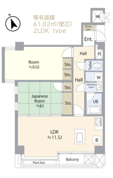 | 専有面積 | 61.02㎡(壁芯) | 建物構造 | 鉄筋コンクリート(RC) |