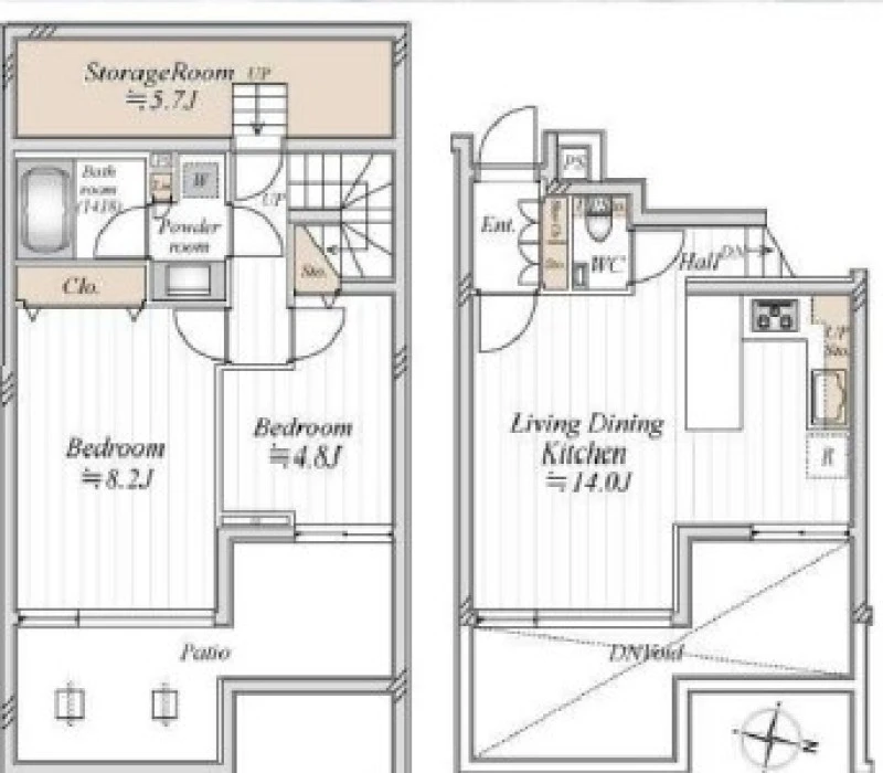 | 設備 | システムキッチン、バス・トイレ別、シャワー、温水洗浄便座、洗面台、シャンプードレッサー、室内洗濯機置場、浴室乾燥機、エアコン、CATV、BS、宅配ボックス、駐輪場、オートロック、モニタ付インターホン、メゾネット | ||