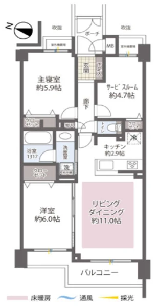 | 専有面積 | 66.16㎡(壁芯) | 建物構造 | 鉄筋コンクリート(RC) |