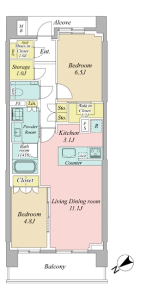 | バルコニー面積 | 19㎡ | バルコニー向き | 北西 |