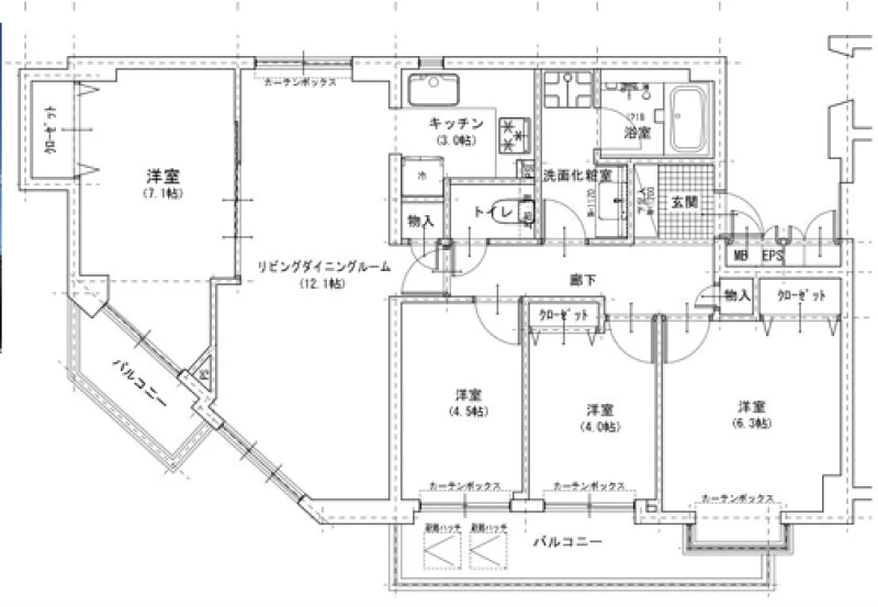 | 間取り | 4LDK | 間取り向き | (角部屋) |