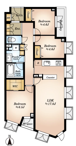 | バルコニー面積 | 3.3㎡ | バルコニー向き | 南 |