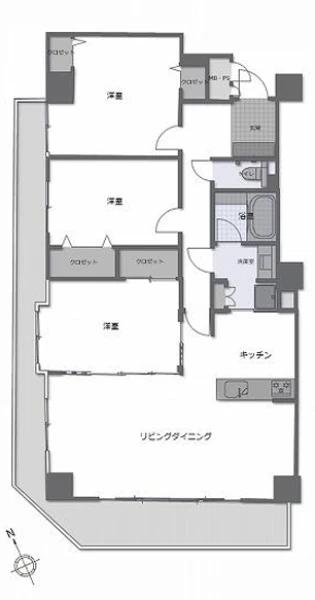 | 間取り | 3LDK | 間取り向き | (角部屋) |