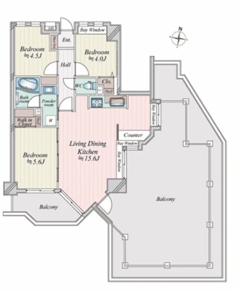 | 間取り | 3LDK | 間取り向き | (角部屋) |