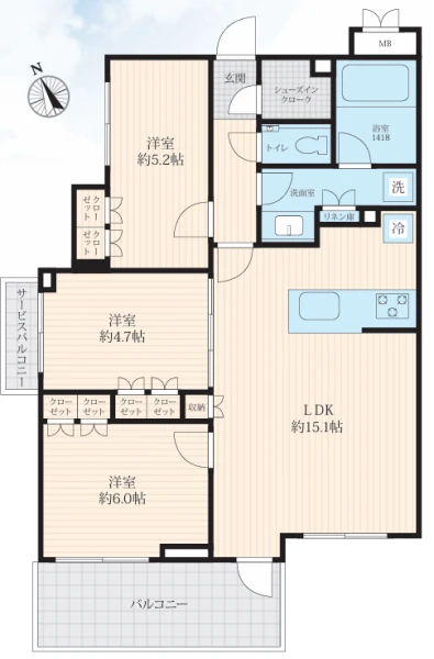 | 間取り | 3LDK | 間取り向き | (角部屋) |