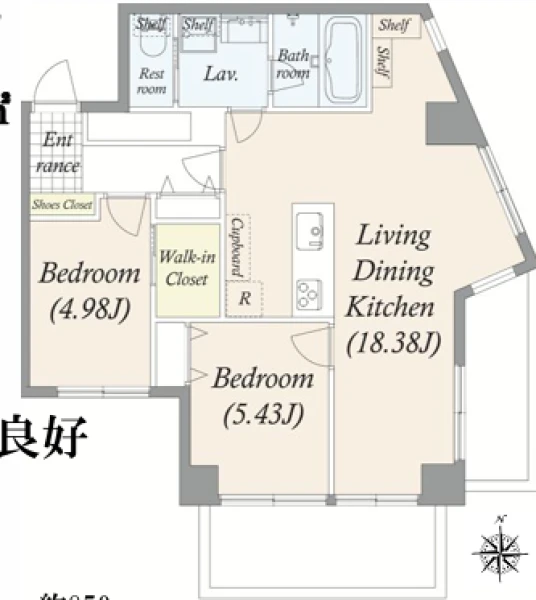 | 間取り | 2LDK | 間取り向き | (角部屋) |