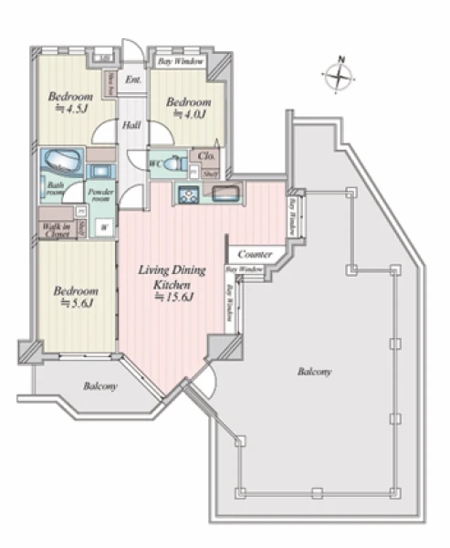 | 間取り | 3LDK | 間取り向き | (角部屋) |