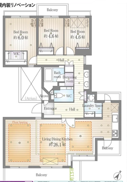 | 間取り | 3LDK | 間取り向き | (角部屋) |