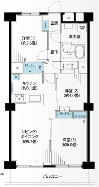 | 間取り | 3LDK | 間取り向き | |