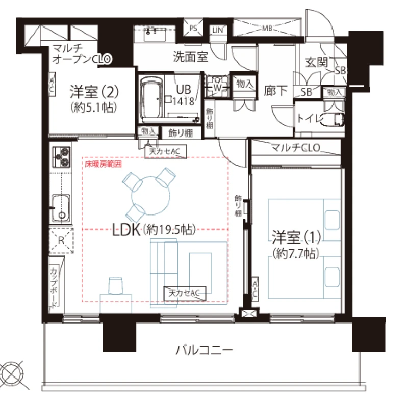 | 専有面積 | 77.56㎡(壁芯) | 建物構造 | 鉄筋コンクリート(RC) |