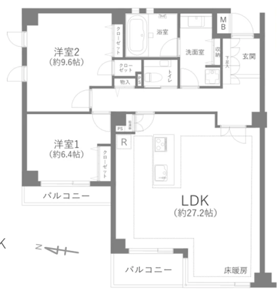 | 間取り | 2LDK | 間取り向き | (角部屋) |