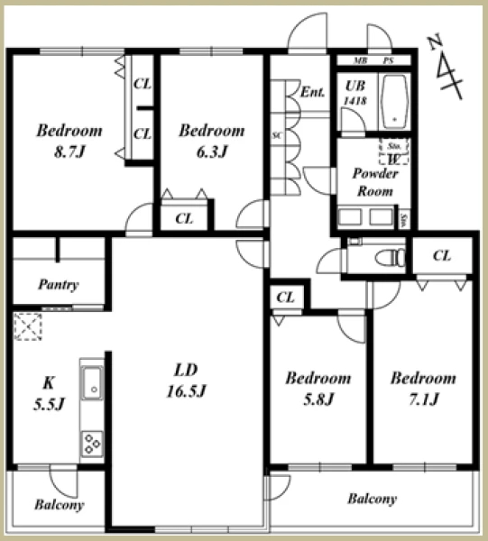 | 専有面積 | 116.25㎡(壁芯) | 建物構造 | 鉄筋コンクリート(RC) |