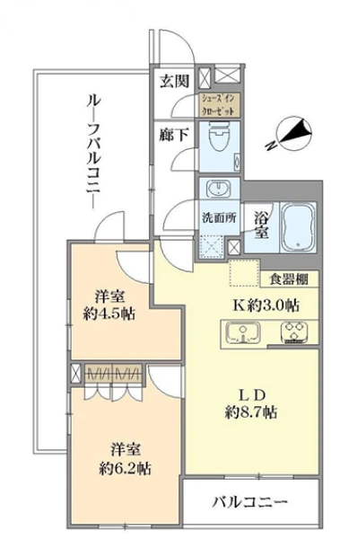 | 間取り | 2LDK | 間取り向き | (角部屋) |