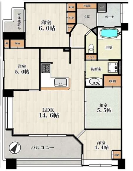 | 間取り | 4LDK | 間取り向き | (角部屋) |