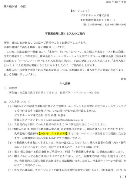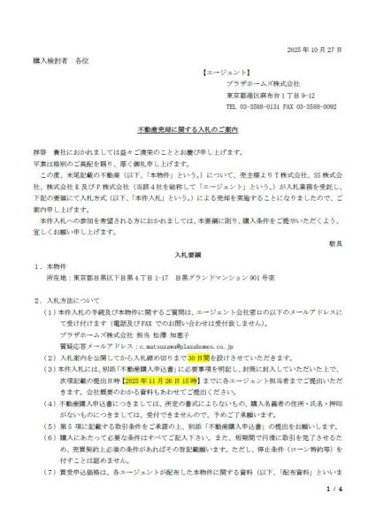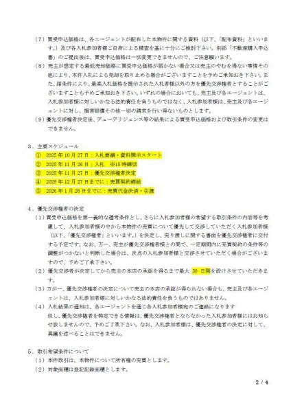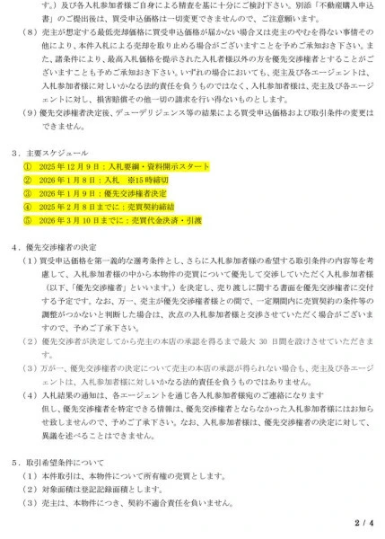 | 引渡し | 期日指定 2026年 1月 下旬 |