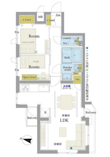 | 間取り | 2LDK | 間取り向き | (角部屋) |