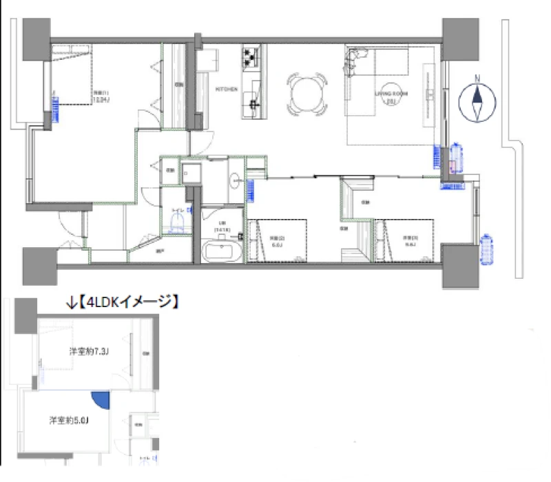 | 間取り | 3LDK | 間取り向き | (角部屋) |