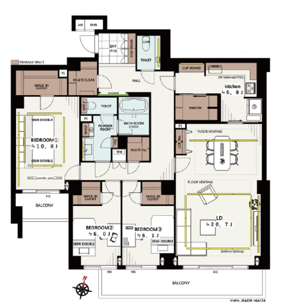 | 間取り | 3LDK | 間取り向き | (角部屋) |